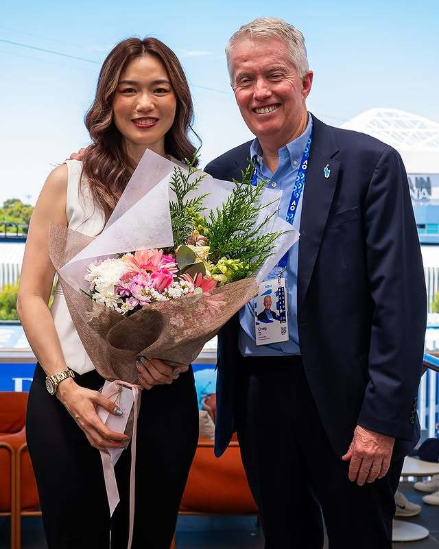 从照片可以看到,中国球迷熟悉的斯托瑟、马泰克,以及澳网赛事总监作为嘉宾出席了詹咏然的退役仪式,仪式的规模较小、持续的时间也较短,詹咏然收到了组委会赠送的照片集以及鲜花。詹咏然曾三度夺得澳网亚军,分别是2007年、2015年搭档郑洁两次夺得女双亚军,以及2011年夺得混双亚军。此外,詹咏然还在2004年与孙胜男组成“海峡”组合夺得澳网青少年组女双冠军。不过,以詹咏然在澳网所取得的成绩以及她在职业网坛的地位,特意为其举行退役仪式多少也令人感到意外,甚至有极端的网友嘲讽其“德不配位”。